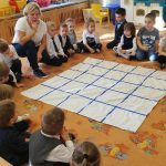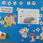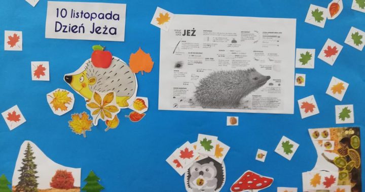 Dzień jeża, który odbył się 8 listopada w naszym przedszkolu, to okazja do poszerzenia wiadomości na temat tych małych kolczastych zwierzątek, ich sposobu poruszania się, odżywiania oraz tego w jaki sposób przygotowują się one do zimy. Celem zajęć było uświadomienie przedszkolakom, że jeże są gatunkiem chronionym i żeby ich nie stracić należy odpowiednio dbać o środowisko. W trakcie zajęć można było „wejść” w rolę jeża i pokonać zakodowaną trasę, po to aby przejść w wyznaczone miejsce, które było umowną stertą liści – bezpiecznym miejscem. Do pracy plastycznej, w której z kropli deszczu otrzymaliśmy jeża, wykorzystana została metoda „Edukacji przez ruch” p. Doroty Dziamskiej, polegająca na rytmicznym rysowaniu kresek do muzyki. Na koniec grupa najstarszych dzieci przygotowała plakat z podstawowymi wiadomościami na temat tych małych ssaków, który zaprezentowany został w naszej przedszkolnej galerii prac.