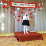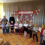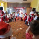 Szereg różnych ciekawych zajęć, wydarzeń i spotkań już za nami. Przypomnieliśmy sobie i utrwaliliśmy Hymn Polski, który przedstawiony był w wersji słowno-obrazkowej, omówiliśmy symbole narodowe, nauczyliśmy się tańca szamotulskiego. Oprócz tego wykonaliśmy szereg prac plastycznych i mogliśmy rywalizować między sobą w dwóch drużynach: białej i czerwonej jak prawdziwi sportowcy. Gośćmi specjalnymi tego tygodnia byli Państwo Anna i Adam Paczkowscy, którzy w strojach ludowych reprezentowali zespół „Pierwiosnek” z Sękowa. Odbył się też konkurs recytatorski pod tym samym tytułem, w trakcie którego dzieci recytowały wiersze związane z Polską.