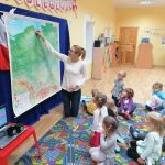 W tym tygodniu realizowaliśmy projekt „Mały przedszkolak-wielki Polak”, którego głównym celem było kształtowanie tożsamości narodowej, poczucia przynależności do Ojczyzny oraz postaw patriotycznych. W ramach projektu młodsze grupy przedszkolne stworzyły pocztówki ze swojego przedszkola, poznały symbole narodowe, najciekawsze miejsca w Polsce oraz legendę o Orlim Gnieździe. Dzieci ze starszych grup utrwalały poznane już wcześniej symbole narodowe, studiowały mapę Polski oaz zapoznały się z lokalizacją na mapie najważniejszych miast i rzek. Poznały słynne zabytki oraz słuchały legend: o Smoku Wawelskim oraz Warsie i Sawie. Wszystkim tym działaniom towarzyszyła tematyczna oprawa muzyczna. Całość projektu została podsumowana edukacyjnym quizem, podczas którego dzieci miały okazję wykazać się zdobytymi wiadomościami.