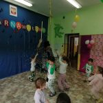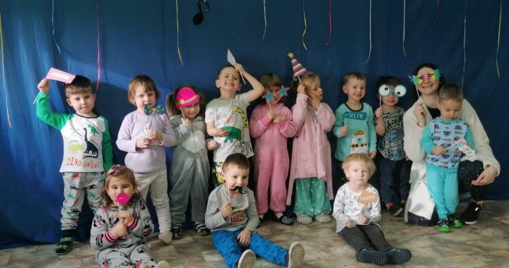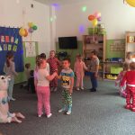 W piątek 29.01.2021 r. w naszym przedszkolu królowały piżamki, a to za sprawą baliku „piżama party”. Już po śniadaniu wszyscy ubraliśmy swoje piżamy i ruszyliśmy na piżamowy bal. Tańcom i zabaw nie było końca. Dzieci młodsze z grupy Pszczółek i Jeżyków tanecznym krokiem wyruszyły w podróż pociągiem dookoła świata – tańczyliśmy między innymi zorbę oraz twista. Na specjalnie przygotowanej ściance zdjęciowej każdy uczestnik tego wyjątkowego balu mógł zaprezentować się w swojej piżamce i wykonać pamiątkowe zdjęcie. W grupie Biedronek i Sówek odbył się piżamkowy pokaz mody, na którym każde dziecko mogło wcielić się w rolę modela i zaprezentować swoją piżamkę. Dużo śmiechu i frajdy sprawił uczestnikom balu udział w zabawie „uciekające krzesełka”. Na zakończenie baliku wszyscy udali się na słodki poczęstunek.