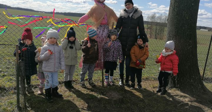 W poniedziałek 22.03.2021 r. grupa Maluchy z oddziałów przedszkolnych w Bytyniu wśród okrzyków i wiwatów pożegnała zimę i z radością przywitała upragnioną wiosnę. W tradycyjnym obrzędzie przedszkolakom towarzyszyła Marzanna. Najpierw dzieci ją przybrały, a następnie w uroczystym orszaku, przy dźwiękach kołatek oraz janczarów, wyszliśmy na ogród przedszkolny głośno pokrzykując „Żegnaj zimo, witaj wiosno!”. Po radosnym marszu nasz barwny korowód zgodnie z tradycją pożegnał Marzannę i w podskokach, ciesząc się z nadejścia nowej pory roku wróciliśmy do sali, aby z zaangażowaniem zabrać się za uprawę wiosennej hodowli. Dzieci zapoznały się z wiosennymi kwiatami i całym procesem wzrostu, od nasion do rośliny. Uczyliśmy się również piosenki „Spotkanie z wiosną” i rozmawialiśmy o zwiastunach wiosny: jak możemy ją rozpoznać, kiedy przychodzi. W tym dniu dzieci poznały tradycję związaną z powitaniem wiosny i zapoznały się z jej zwiastunami. Dzień był słoneczny i prawdziwie wiosenny, tym bardziej radość z przyjścia nowej pory roku była większa.