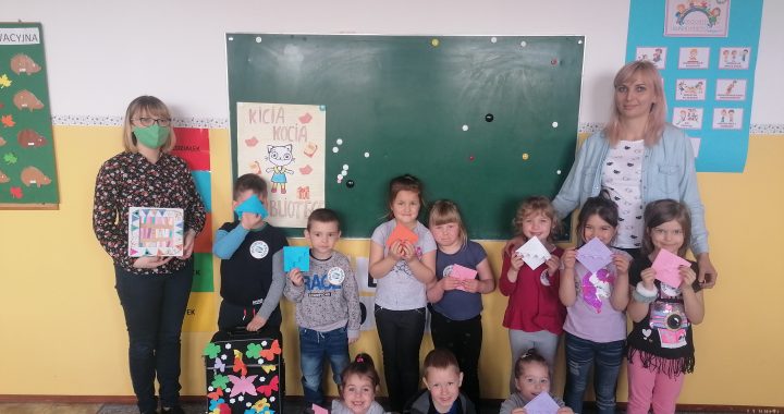Dnia 7.05. z okazji Dnia Bibliotekarza i Bibliotek gościliśmy w naszej grupie panią Olgę, szkolną bibliotekarkę. Pani Olga przeczytała nam książkę z serii Kicia Kocia, ,,Biblioteka”. Dzieci dowiedziały się co można robić w bibliotece oraz jak należy się niej zachowywać. Następnie pani bibliotekarka zaprezentowała dzieciom różne rodzaje książek. Wszyscy z wielkim zaciekawianiem oglądali przyniesione dzieła literackie. Na zakończenie przedszkolaki wykonały zakładki do swoich książeczek. Dziękujemy pani Oldze za poświęcony czas i wspaniale przygotowane zajęcia.