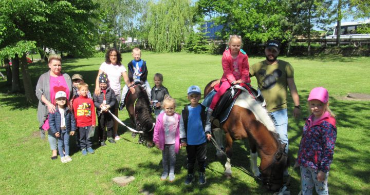 W przeddzień Dnia Dziecka przedszkolaki i uczniowie naszego Zespołu mieli nie lada atrakcję – zawitały do nas dwa kuce. Każdy miał szansę przejechać się na jednym z tych sympatycznych zwierzaków. Chętnych nie brakowało, co widać na poniższych zdjęciach.