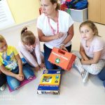 W poniedziałek 13 września przedszkolaki poprzez zabawę oraz zadania poznały i utrwaliły zasady udzielania pierwszej pomocy. Dzieci z zainteresowaniem oraz ogromną aktywnością uczestniczyły w zajęciach, słuchały uważnie wskazówek dotyczących zachowania się w sytuacji niebezpiecznej, nauczyły się i utrwaliły podstawowe numery alarmowe oraz jak prawidłowo wezwać pomoc przez telefon.