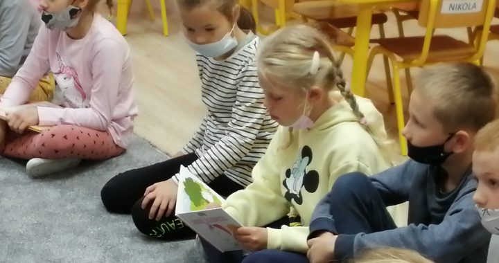 Trzecioklasiści z kolei wysłuchali  Klaudii Poznańskiej z kl. VIII, która czytała książkę „Nasz azyl” Marty Józefczyk.  Natomiast klasa III czytała w zerówce książkę „Tajemnica miłości” Martina Widmarka i Heleny Willis.