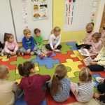 Pierwszoklasiści przygotowali niespodziankę 4 i 5-latkom z Publicznego Przedszkola w Gaju Wielkim. Dominika Konieczna i Franek Antoniewski czytali młodszym koleżankom i kolegom książki o Kici Koci. Przedszkolaki z zaciekawieniem słuchały o przygodach małej  kotki, oglądały obrazki, a nawet wypowiadały się na temat tekstu. Uczniowie byli bardzo dumni, że mogli podzielić się swoimi umiejętnościami z większą publicznością. Na koniec dla czytelników i słuchaczy były cukierki.