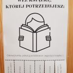 Od 18 do 22 października trwała zabawa biblioteczna „Sprawdź się!” – quizy, krzyżówki i wykreślanki online z książką w roli głównej. Kolejna akcja biblioteczna nosiła tytuł „Weź książkę, której potrzebujesz”. Uczniowie, z plakatów „wydzieranek” wywieszonych na parterze i piętrze, mogli oderwać kartkę z tytułem wybranej książki i wypożyczyć ją w bibliotece. Chętni uczniowie mieli szansę zrobić sobie zdjęcie w bibliobudce „Czytam, bo lubię”. Cieszyła się ona powodzeniem, czytelnicy chętnie się z nią i w niej fotografowali.