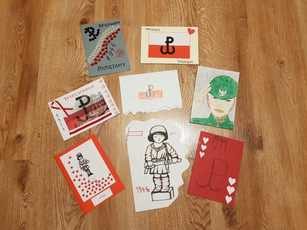 Wszyscy chętni uczniowie wykonali przepiękne kartki. Klasy starsze na lekcjach historii zapoznały się z okolicznościami wybuchu powstania warszawskiego, jego przebiegiem i skutkami, dzięki filmom edukacyjnym przygotowanym przez organizatora projektu, czyli Fundację Sensoria. Następnie uczniowie wykonywali mapy myśli, które zawierały najważniejsze informacje na temat tego wydarzenia.