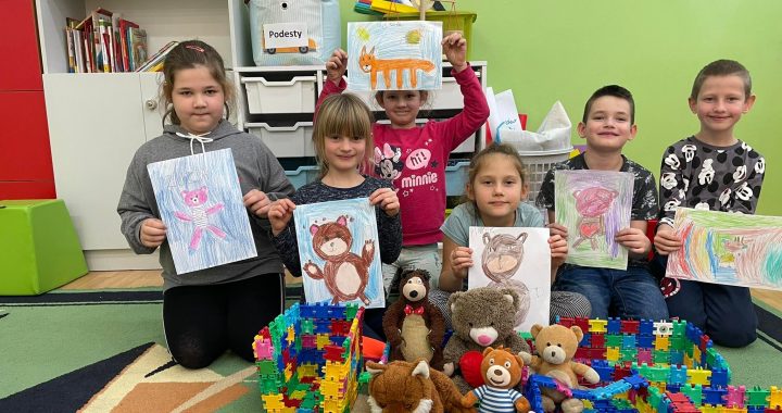 Za oknem szaro, buro i ponuro a pierwszaki jak zwykle wesoło spędzają czas w szkole. W Dniu Pluszowego Misia każdy przyszedł ze swoim przyjacielem – ulubionym pluszakiem. Podczas świetlicy dzieci rysowały portrety swoich zabawek i budowały im domy z klocków.