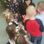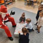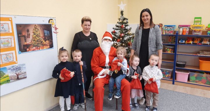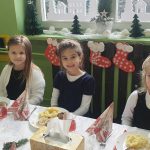 Dziś nasze przedszkolaki zasiadły do pięknie udekorowanych stołów na których królował świąteczny obiad. Była to okazja do wspólnego, radosnego kolędowania oraz wyczekiwania na tajemniczego gościa, którym okazał się Gwiazdor z workiem prezentów. Każdy otrzymał upominek, który jeszcze bardziej umilił ten dzień.