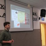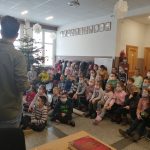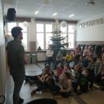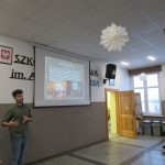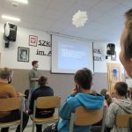 o swoich marzeniach, o tym jak  rozwijał i rozwija swoje umiejętności, pasje fryzjerskie i kreatywność. Opisywał konkursy, w których brał udział, jakie medale zdobył, prezentował fryzury, które zostały nagrodzone. Niestety w związku z pandemią nie mógł pokazać w realu swojej pracy. Uczniowie bardzo entuzjastycznie reagowali na pytania naszego gościa, wchodzili z nim w interakcje. Po spotkaniu, uczniowie starszych klas, jeszcze zatrzymali na chwilę naszego gościa, żeby się dopytać o zawód fryzjera. Może szykują się kolejni mistrzowie.