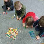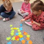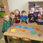 W naszym przedszkolu od stycznia prowadzony jest projekt edukacyjny „Matematyka dla smyka”. Głównym celem realizacji projektu jest podniesienie poziomu kompetencji matematycznych dzieci, rozwój logicznego myślenia i wykształcenie umiejętności posługiwania się pojęciami matematycznymi. Przedszkolaki mają okazję zobaczyć, jak w ciekawy sposób można bawić się matematyką, a przy tym uczyć się, zdobywać nowe umiejętności i rozwijać matematyczną wyobraźnię.  W ramach projektu zrealizowano dwa tematy z kalendarza uroczystości i imprez przedszkolnych, które wprowadziły dzieci w świat matematyki: „Dzień Łamigłówek” oraz „Dzień Figur Geometrycznych”. Dzieci poprzez gry i zabawy rozwiązywały zagadki logiczne, szyfrowały imiona, układały puzzle oraz pracowały z komputerem, rozwiązując sudoku i rebusy. W dniu figur geometrycznych ćwiczyły spostrzegawczość, szukając w sali kształtów geometrycznych, uczyły się piosenki pt. „Figury geometryczne” oraz stworzyły piękne prace plastyczne wykorzystują podstawowe figury geometryczne.