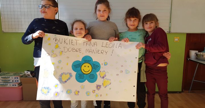 Podczas czwartkowych zajęć świetlicowych uczniowie klasy 1 przypomnieli sobie zasady dobrego zachowania. Najpierw wysłuchali opowiadania z książki Joanny Krzyżanek „Dobre maniery, czyli savoir-vivre dla dzieci”, a następnie odgrywali scenki, w których należało zasady savoir-vivre wykorzystać w praktyce. Na koniec wykonali plakat „Niezapominajkę” z najważniejszymi wskazówkami dotyczącymi dobrych manier.