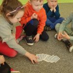 11 marca świętowaliśmy dzień królowej nauk- matematyki. Dzieci przez cały dzień na różne sposoby kształtowały orientację przestrzenną, przeliczały oraz rozwiązywały zadania arytmetyczne i zagadki matematyczne. Przedszkolakom bardzo spodobały się zabawy matematyczne z wykorzystaniem kart do gry. Wszystkie wykonane zadnia oraz uśmiechy na dziecięcych twarzach pokazały, że matematyka może być ciekawa, interesująca i wciągająca.