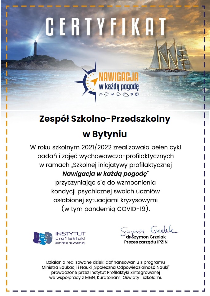 W pierwszym tygodniu kwietnia uczniowie z klas V – VIII zakończyli kilkumiesięczną przygodę z Nawigacją w Każdą Pogodę. NWKP był programem, którego głównym celem było wzmocnienie kondycji psychicznej uczniów po okresie pandemii i wyposażenie ich w narzędzia radzenia sobie w sytuacjach trudnych i kryzysowych. Potrzeba wprowadzenia działań była efektem raportu „Jak wspierać uczniów po roku pandemii?”, który powstał na zlecenie MEN w 2021 roku. Główne rekomendacje dla systemu edukacji zawarte we wspomnianym raporcie wskazały na potrzebę przywrócenia równowagi między przewartościowanym nauczaniem, a niedowartościowanym wychowaniem oraz priorytetowe potraktowanie działań wychowawczych, profilaktycznych i pomocowych w obszarze wsparcia psychicznego uczniów zarówno w fazie pandemii, jak i w okresie bezpośrednio po jej wygaśnięciu. Autor programu, czyli Instytut Profilaktyki Zintegrowanej przygotował dla naszych podopiecznych serię zajęć, których problematyka bazowała na wynikach ankiet wcześniej przeprowadzonych wśród Uczniów, Rodziców i Nauczycieli naszej Szkoły.
