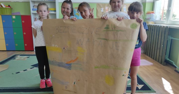 W ostatnim tygodniu roku szkolnego uczniowie klasy pierwszej przygotowywali się do bezpiecznych wakacji. Wychowawczyni przypomniała, żeby kąpali się tylko w miejscach wyznaczonych, pod opieka rodziców, aby w czasie upału mieli nakrycie głowy, stosowali krem ochronny. Uczniowie obejrzeli też zdjęcia niebezpiecznych roślin i zwierząt takich jak kleszcze, osy, żmije, owoce konwalii. Pierwszoklasiści uczestniczyli też w zajęciach edukacyjno – prewencyjnych zaproponowanych przez Państwową Komisję ds. wyjaśniania czynności skierowanych przeciwko wolności seksualnej i obyczajności wobec małoletniego poniżej 15. roku życia.