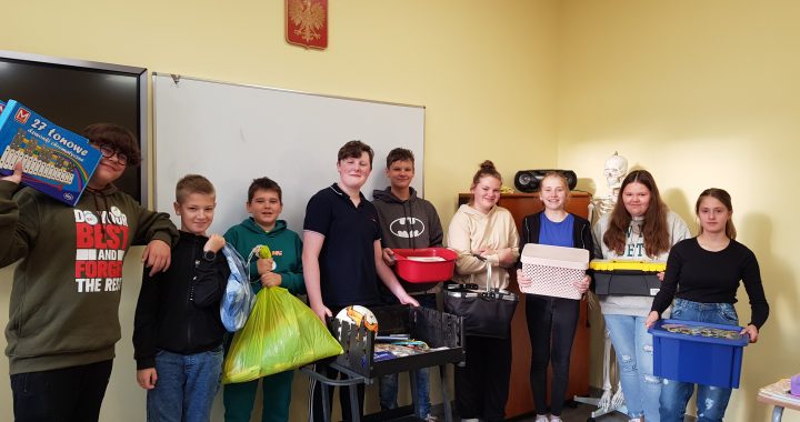 Ostatniego dnia września w naszej szkole odbył się dzień bez plecaka. Uczniowie wykazali się kreatywnością i przynieśli zaskakujące i zabawne, alternatywne formy „plecaka”. W każdej klasie było wiele śmiesznych propozycji, między innymi: grill, poszewka na pościel, koszyk wielkanocny, transporter dla kota, nosidełko dla psa i wiele innych. Liczba zaangażowanych w akcję SU uczniów, świadczy o ich wspaniałej energii i zapale.