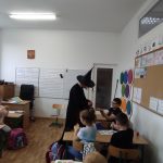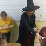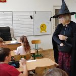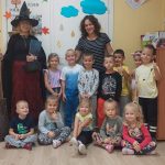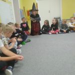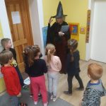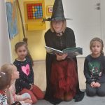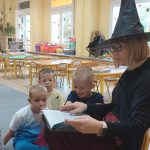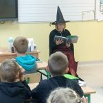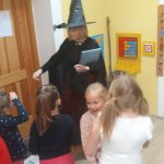 W tym roku przedszkolaków oraz najmłodszych uczniów z kl. 1-3 odwiedziła Czarownica, która przeczytała tytułowe opowiadanie z książki Małgorzaty Strzałkowskiej pt. „Plaster Czarownicy i inne baśnie”. To krótka bajka o czarownicy, która wcale nie jest groźna, a do tego kwiaty z jej ogrodu nie dość, że wyglądają pięknie, to mają moc leczenia skaleczeń i… przypominania najlepszych dowcipów. Opowieść momentami utrzymująca czytelnika w napięciu, ale też śmieszna, uczy by nie oceniać innych po pozorach, bo „czasami nic nie jest takie, takie się wydaje na pierwszy rzut oka”.