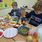 Wspólna praca okazała się super zabawą i niezwykle przyjemną nauką komponowania posiłków. Wokół pachniało przepięknie mandarynkami, a talerze były pełne kolorowych owoców. Oczywiście na koniec czekało nas najprzyjemniejsze zadanie, czyli… zjedzenie tych niezwykłych kolorowych śniadań.