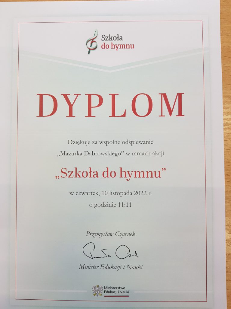 Uczniowie, nauczyciele i pracownicy szkoły włączyli się również w akcję „Szkoła do Hymnu”, polegającą na wspólnym odśpiewaniu „Mazurka Dąbrowskiego”.