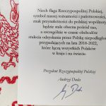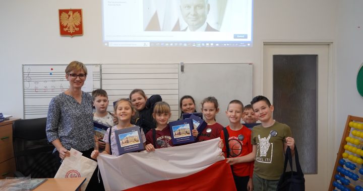 Skontaktowała się ze mną przedstawicielka Kancelarii Prezydenta, która przekazała podziękowania, poinformowała również o wysłaniu upominków. Drugoklasiści otrzymali puzzle z Pałacem Prezydenckim, znaczki oraz worki/plecaki z emblematami Kancelarii Prezydenta RP. Była też niespodzianka dla mnie – flaga Polski z dedykacją Głowy Państwa.