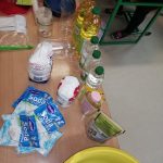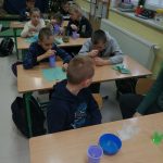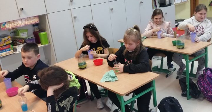 Klasa III kolejny raz mogła odkrywać niesamowity świat przyrody. 19 grudnia uczniowie sprawdzali, jak niektóre produkty i przyprawy kuchenne zachowują się w połączeniu z innymi. Na początku łączyli sodę oczyszczoną z zabarwionym octem przez warstwę oleju roślinnego. Po zetknięciu się sody z octem powstał gaz, który przebijał się przez olej w postaci kolorowych bąbli.  Kolejne doświadczenie polegało na oczyszczeniu zabrudzonej przez pieprz wody, maczając palec w płynie do naczyń.  Tego dnia zajęliśmy się również zrobieniem roztworu nasyconego z wody, w której rozpuszczaliśmy sól. Celem tego doświadczenia jest otrzymanie solnych kryształków.  Tym razem nie wszystkie doświadczenia udało nam się zrealizować, ale kiedy wykonuje się coś krok po kroku samodzielnie, z ogromnym zaangażowaniem, zajmuje nam trochę więcej czasu niż przewidzieliśmy.