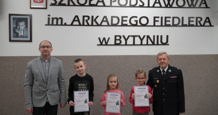 Nasi uczniowie zostali docenieni przez gminną komisję konkursową w Ogólnopolskim Konkursie Plastycznym „Zapobiegajmy pożarom”. Prace Michaliny Szmyt, Blanki Woźniak i Jeremiasza Klaka zostały zakwalifikowane do etapu powiatowego. W poniedziałek 9 stycznia nasi laureaci odebrali dyplomy i drobne upominki za udział w etapie gminnym.