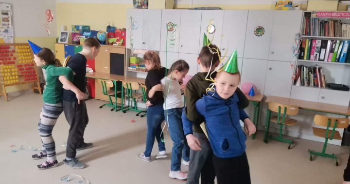 W tym roku postanowiliśmy, że zabawa karnawałowa w klasie III będzie wyglądała nieco inaczej niż w poprzednich latach. Ponieważ bardzo ciężko jest zmotywować niektórych do tańca, to skupiliśmy się tylko na zabawach, oczywiście muzycznych. Najpierw ustroiliśmy salę, nadmuchaliśmy balony i wybraliśmy muzykę, a później bawiliśmy się i w parach, i osobno. Jak było? Uśmiechy na twarzach dzieci mówią same za siebie.