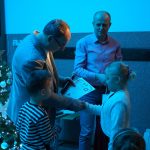 Po pięknych występach, kiedy już pierwsze emocje opadły wszyscy uczestnicy oraz widzowie udali się do jednej z sal lekcyjnych na przygotowany słodki poczęstunek przy herbacie lub kawie. W tym czasie zaproszone jury w składzie: Pani Dominika Nowaczyk i Pan Krzysztof Koput – oboje absolwenci Państwowej Szkoły Muzycznej II stopnia im Fryderyka Chopina w Poznaniu – udali się na obrady. Po przerwie Pan Dyrektor Mirosław Klak najpierw wręczył nagrody za konkurs plastyczny na świątecznego lapbooka, który został rozstrzygnięty już wcześniej, a następnie wręczył nagrody za konkurs kolęd.