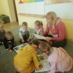 W ramach projektu edukacyjnego ,,Poznajemy regiony Polski” w lutym wybraliśmy się w Bieszczady i Podhale. Na początku zaznaczyliśmy te regiony Polski na mapie. Wybraliśmy się w podróż po zamkach, które znajdują się w tych rejonach. Stworzyliśmy maski i zorganizowaliśmy bal na zamku. Przedszkolaki zapoznały się z życiorysem Ignacego Łukasiewicza (pochodzącego z Bieszczad). Po zachwycie nad lampą naftową, zorganizowaliśmy teatr cieni. Ostatniego dnia skupiliśmy się na zwierzętach żyjących w górach, a szczególnie na niedźwiedziach. Z przyniesionych książek dowiedzieliśmy się co nieco o życiu i zwyczajach ,,misiów”, a następnie chodziliśmy ich tropami.