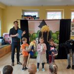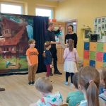 Podczas naszego kolejnego spotkania z Klubem Muzyka wspólnie z aktorami wybraliśmy się do teatru. Poznaliśmy teatr „od kuchni” – wiemy co to widownia, scena i kurtyna. Dowiedzieliśmy się czym są próby i na czym polega casting. Kilku śmiałków wzięło nawet udział w takim castingu, a potem podczas próby wykazali swoje zdolności aktorskie. Było bardzo wesoło, bardzo nam się podobało  i nie możemy się doczekać wyprawy do prawdziwego teatru.