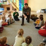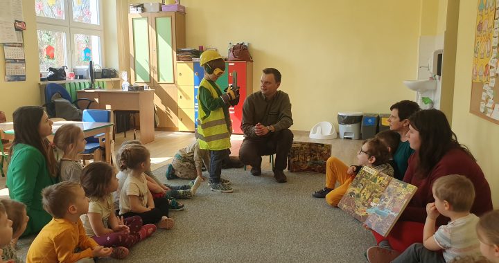 W czwartek 6.04 gościliśmy w naszym przedszkolu Pana Jakuba – leśnika z Nadleśnictwa Pniewy.  Na początku spotkania pan Jakub zaprezentował dzieciom swój mundur, a następnie opowiedział o swojej pracy, o lesie w różnych porach roku i mieszkających w nim zwierzętach. Zaproszony gość zaprezentował odpowiedni ubiór na wycieczkę w okolicę lasu, pokazał również ziarenka drzew. Na koniec spotkania dzieci miały możliwość zadawania pytań i ochoczo z niej skorzystały. Pytania były przeróżne, ale nasz gość wyczerpująco na nie odpowiedział. Serdecznie dziękujemy panu Jakubowi za to owocne spotkanie.