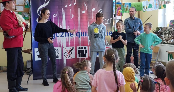 Klasy 1-3 po raz kolejny brały udział w spotkaniu z Klubem Małego Muzyka. Tym razem dzieci bawiły się w „muzyczne quizowanie” oraz poznały starodawny instrument „koza” oraz tradycje i ciekawostki z nim związane. Posłuchały także „pojedynku” nowoczesnego instrumentu ze starodawnym, wysłuchując melodii przez nie wygrywanych. Spotkanie było także okazja do odśpiewania i odegrania „Sto Lat” dla kolegi obchodzącego urodziny.