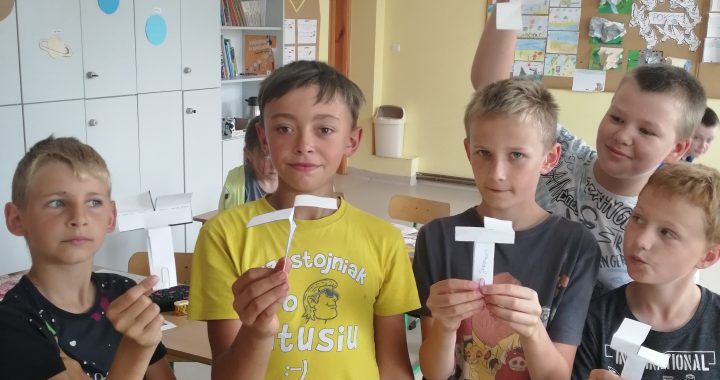 To już ostanie zajęcia w klasie III w ramach innowacji pedagogicznej „Ciekawy świat – doświadczam i eksperymentuję”. Tym razem budowaliśmy papierowe wiatraki. Następnie chcieliśmy się dowiedzieć  czy ich budowa pozwoli im swobodnie spadać, jak i co powoduje ich szybsze spadanie na ziemię (plastelina, spinacze do papieru i bez obciążenia). Drugim zadaniem było sprawdzenie natężenia ruchu w okolicy naszej szkoły. Najpierw staraliśmy się przewidzieć, ilu w okresie badania przejdzie ludzi, ile przejedzie rowerów, motocykli, aut osobowych