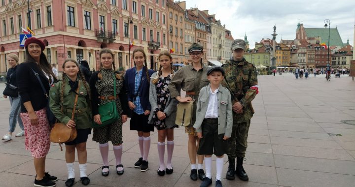 W ramach obchodów 79. rocznicy wybuchu powstania warszawskiego na dziedzińcu Ministerstwa Kultury i Dziedzictwa Narodowego w Warszawie odbyło się wydarzenie „Wielkopolska Barykada’44 – Wspólna Sprawa 1944”. Już po raz drugi nasi uczniowie współtworzyli Wielkopolską Barykadę. Pani Elwira Fronczak, prezeska Stowarzyszenia Miłośników Historii „Huzar”, zaprosiła naszych podopiecznych do wcielenia się w rolę Zawiszaków, czyli najmłodszych wiekowo członków Szarych Szeregów konspiracyjnego harcerstwa podczas II wojny światowej. Uczniowie przebrali się w stroje z epoki i zaopiekowali sie powstańczą pocztą polową. Mieli okazję poznać i porozmawiać z najstarszym powstańcem powstania warszawskiego, w punkcie kolportażu ulotek odbijali na powielaczu plakaty, wydawali legitymacje AK oraz roznosili powstańcze opaski. O godzinie „W” przy kościele św. Anny na Starówce uczestniczyli w obchodach wybuchu powstania warszawskiego. W drodze powrotnej udzielili wywiadu reporterowi Polskiego Radia. Wydarzenie było bogate w niezapomniane chwile, była to żywa lekcja historii, której treści na zawsze pozostaną w pamięci jej uczestników.