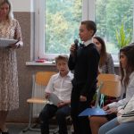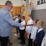 Po części artystycznej uczniowie złożyli uroczyste ślubowanie, następnie p. Dyrektor pasował ich na uczniów naszej szkoły. Starsi koledzy i koleżanki złożyli życzenia, wychowawczyni wraz z nauczycielem współorganizującym proces uczenia wręczyli pamiątkowe dyplomy i książki, a rodzice pogratulowali i podarowali im niespodzianki. Po wszystkich oficjalnych występach rozpoczęła się biesiada wszystkich uczestników tego spotkania, w którym najważniejsi byli uczniowie klasy 1.
