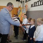 13 października dla uczniów klasy 1 był wyjątkowym dniem. W godzinach popołudniowych odbyło się ich oficjalne przyjęcie do grona społeczności szkolnej Szkoły Podstawowej im. Arkadego Fiedlera w Bytyniu. Na uroczystość był zaproszony pan Dyrektor i pani Wicedyrektor, rodzice uczniów klasy 1 oraz nauczyciele uczący w tej klasie. Dzieci włożyły dużo pracy w przygotowania, efekt był piorunujący. Z uśmiechem na twarzach recytowały, śpiewały, liczyły, tańczyły i odpowiadały na zagadki i nawet wypicie „cudownego napoju” nie pogorszyło atmosfery.