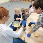 Prawidłowe żywienie ma ogromny wpływ na zdrowie i rozwój dziecka w wieku przedszkolnym, którego organizm intensywnie się rozwija. Dla naszych dzieci jest to niesamowita podróż do świata smaków, zapachów i kolorów. Dzięki tej zabawie można wspierać zdolności poznawcze zmysłów – węchu, smaku, dotyku, wzroku.