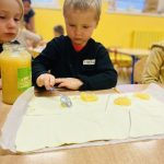 Celem zajęć kulinarnych jest nauczenie dzieci czerpania radości ze wspólnego przygotowywania posiłków oraz wyrobienie nawyków zdrowego odżywiania. Podczas tych zajęć dzieci rozwijają swoją kreatywność, samodzielność oraz sprawność manualną, a także uczą się planowania swoich działań. Wspólne przyrządzanie posiłków jest okazją do aktywnego współdziałania w grupie i sprawia dzieciom mnóstwo radości. Wszystkie przedszkolaki zrobiły już pyszny owocowo- warzywny koktajl oraz ciastka francuskie z jabłkiem. Przed nami jeszcze wiele smacznych i zdrowych potraw do zrobienia.