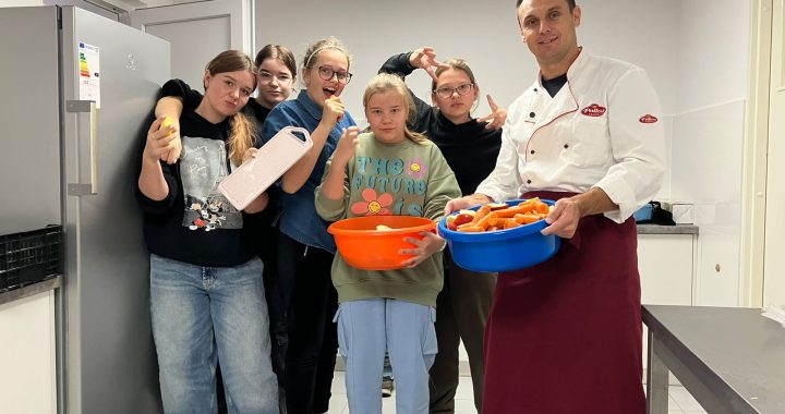 W ramach programu „Trzymaj formę” klasa VI przygotowała soki warzywno – owocowe, sporządzone z marchwi i jabłek oraz specjalny sok z dodatkiem papryczki piri piri, która podnosi odporność organizmu, szczególnie narażonego na infekcje w okresie jesieni. Warzywa i owoce powinny być spożywane do każdego posiłku, a w postaci świeżo wyciśniętego soku stanowią bombę witaminową.