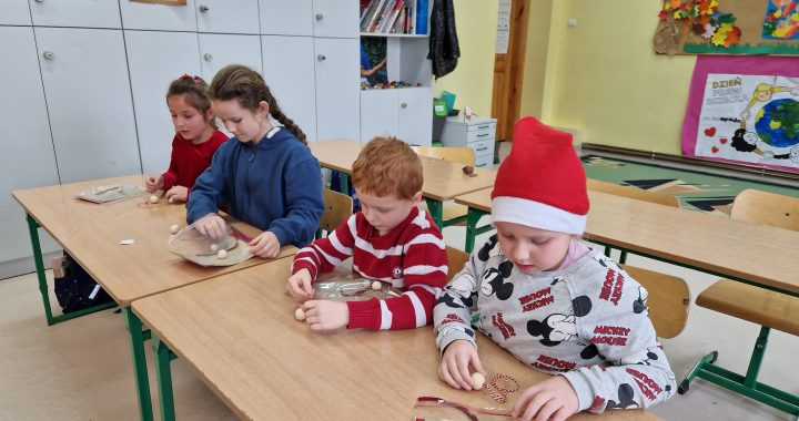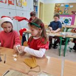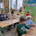 Chętni uczniowie klas 1-3 wzięli udział w mikołajkowych warsztatach rękodzielniczych. Pod okiem Pani Aleksandry Szkudlarek wykonali zabawne bałwanki, urocze aniołki i pachnące makatki na cynamonowej lasce. Ozdoby i pięknie wykonane kartki z życzeniami wprowadziły w przedświąteczny nastrój wszystkich uczestników.