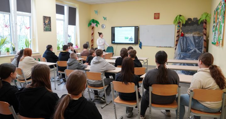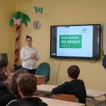 W środę, 10 kwietnia, uczniowie klasy 6 i 7 spotkali się z Panią Beatą Piątek-Spychałą, kierowniczką Banku Spółdzielczego Duszniki oddział w Kaźmierzu. Prelegentka przedstawiła swoją drogę zawodową, opowiedziała kto może znaleźć zatrudnienie w banku i podkreśliła znaczenie umiejętności interpersonalnych osób pracujących w banku. Dodatkowo, zwróciła uwagę na istotę bezpieczeństwa w sieci, szczególnie w kontekście bankowości internetowej. Opowiedziała o najnowszych działaniach oszustów internetowych, którzy wykradają dane i pieniądze z rachunków bankowych. Przekazała praktyczne wskazówki dotyczące ochrony danych osobowych, unikania podejrzanych wiadomości i linków, omówiła sposoby świadomego i wygodnego dokonywania płatności. Na koniec przedstawiła też ofertę banku dla młodzieży.