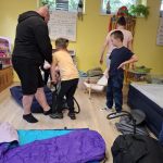 Tak długo oczekiwana noc w przedszkolu w końcu nadeszła. 7 czerwca dzieci przybyły do przedszkola późnym popołudniem, aby rozpocząć niesamowitą przygodę. Wspólnie z rodzicami uszykowały miejsca do spania. Najpierw wszyscy złożyliśmy przysięgę nockowicza, w której przysięgaliśmy się dobrze bawić, nie marudzić i być odważnym. Po wspólnej kolacji, udaliśmy się na poszukiwanie „stworka”, który w ostatnim czasie trochę psocił w grupie Starszaków. Zabraliśmy latarki i udaliśmy się na poszukiwania. Okazało się, że „stworek” to całkiem