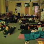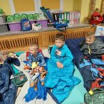 Nadszedł czas na podchody. Podzieliliśmy się na dwie grup „uciekająca” i „goniąca”. Po wykonaniu zadań wszyscy razem spotkaliśmy się na Rybakówce. Wracaliśmy pełni wrażeń do przedszkola z migającymi latarkami. Po wieczornej toalecie dzieci szybko przebrały się w piżamki i rozpoczął się seans bajkowy, powoli zmęczeni zasypialiśmy przytuleni do naszych poduszek. A z samego rana wszystkie dzieci z uśmiechem i błyskiem w oku witały swoich rodziców. To była niezapomniana noc.