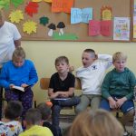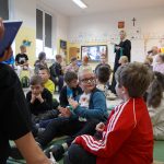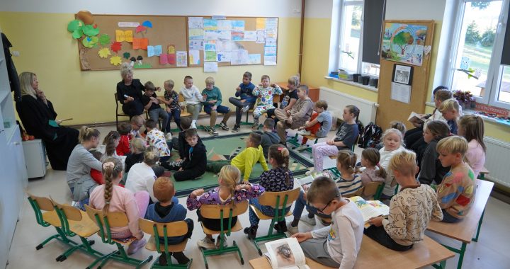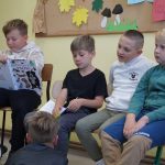 W związku z tym, wychowawcy klas I-III zobowiązali się do przygotowania okolicznościowej wystawy książek i zapoznania dzieci z twórczością pisarki. Następnie 27 września wszyscy spotkaliśmy się w jednej z sal i chętne dzieci czytały pozostałym słuchaczom opowiadania, bajki i różne ciekawostki o zwierzętach. Mieliśmy również gościa, bo na zaproszenie dla rodziców odpowiedziała mama Jasia i zachęciła dzieci do zapoznania się z zabawnymi opowiadaniami o szkole i uczniach, a wychowawczyni klasy II przeczytała fragment książki Janiny Porazińskiej „Kozucha – Kłamczucha”.