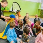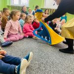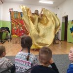„Ta dziewczynka to Harfinka”, czyli kolejne spotkanie z Filharmonią Pomysłów. Tym razem mieliśmy okazję słuchać pięknych dźwięków harfy oraz poznać kilka ciekawostek o tym instrumencie. Oprócz słuchania pięknych dźwięków nauczyliśmy się także podstawowych figur baletowych. Z niecierpliwością czekamy na kolejne spotkanie.