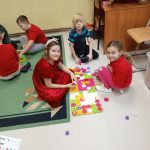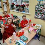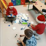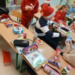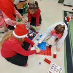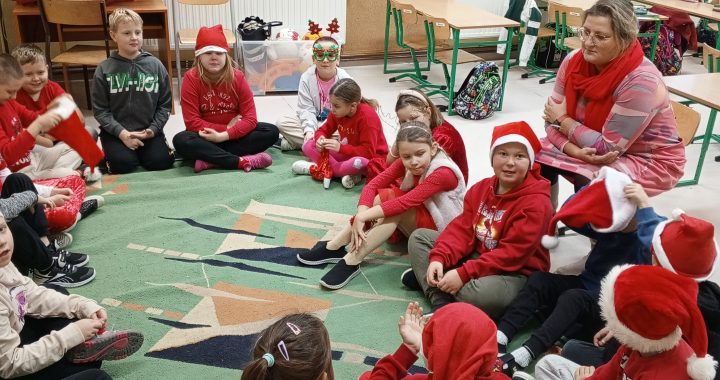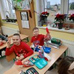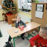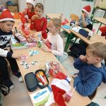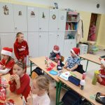 W piątek 6 grudnia uczniowie klasy 2 już od samego rana byli bardzo zajęci. Dzień rozpoczęli od dokończenia strojenia sali lekcyjnej, robienia przedświątecznych porządków i oczekiwania na Mikołaja, który zjawił się niespodziewanie, zostawiając niespodzianki w wypucowanych butach. Później, w ramach zadania z kalendarza adwentowego, bawili się klockami KORBO, które szkoła otrzymała w ramach programu „Laboratoria Przyszłości”. Drugoklasiści wzięli również udział w akcji w tworzeniu łańcucha słów, które łączą. Na zakończenie mikołajkowego piątku dzieci kodowały na macie kolorowymi kubeczkami.