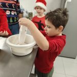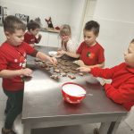W piątek 6 grudnia uczniowie klasy 1 przygotowali ciasto, a następnie z wielką radością wałkowali i wycinali foremkami ulubione kształty. Zapach piekących się pierników wypełnił całą kuchnię wprawiając wszystkich w cudowny świąteczny nastrój. Gdy pierniczki były już gotowe dzieci przystąpiły do pierwszego kosztowania swoich wypieków i dekorowania. Pieczenie pierników sprawiło dzieciom wielką radość.