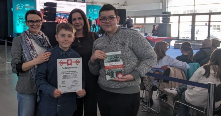 W grudniu podopieczni naszej szkoły utkali fragment powstańczej rozety. Tym samym podjęli działanie, którym uczcili pamięć powstańców wielkopolskich. W dniu 9 marca na MTP w Poznaniu, delegacja z naszej szkoły: opiekunowie SKKT oraz uczniowie klasy VI: Wojciech Krakowiak i Wiktor Każmierczak, wzięła udział w uroczystym podsumowaniu projektu. Podczas gali obecni byli m.in. prezes PTTK i kustosz Muzeum Powstania Wielkopolskiego. Nasza szkoła została nagrodzona dyplomem, książką i pamiątkowym godłem. Chętni uczestnicy projektu mogli za darmo zwiedzić Muzeum Powstania Wielkopolskiego.