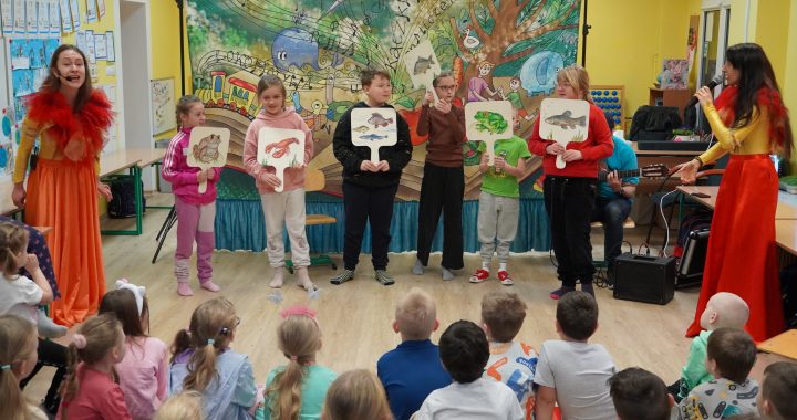 We wtorek 11 marca 2025 r. kolejny raz odwiedziła Nas Filharmonia Pomysłów, która zaprezentowała przedszkolakom i uczniom klas 1-3 przedstawienie pt. „Rozśpiewane Dźwiękowiersze”. Aktorzy przedstawili wiersze znanych polskich poetów: Brzechwy i Tuwima. Dzieci świetnie bawiły się słuchając wierszy: „Kaczki”, „Ryby, żaby i raki”, „Dwa Michały” w pięknej wersji wokalno- instrumentalnej. Już nie możemy doczekać się następnego przedstawienia.